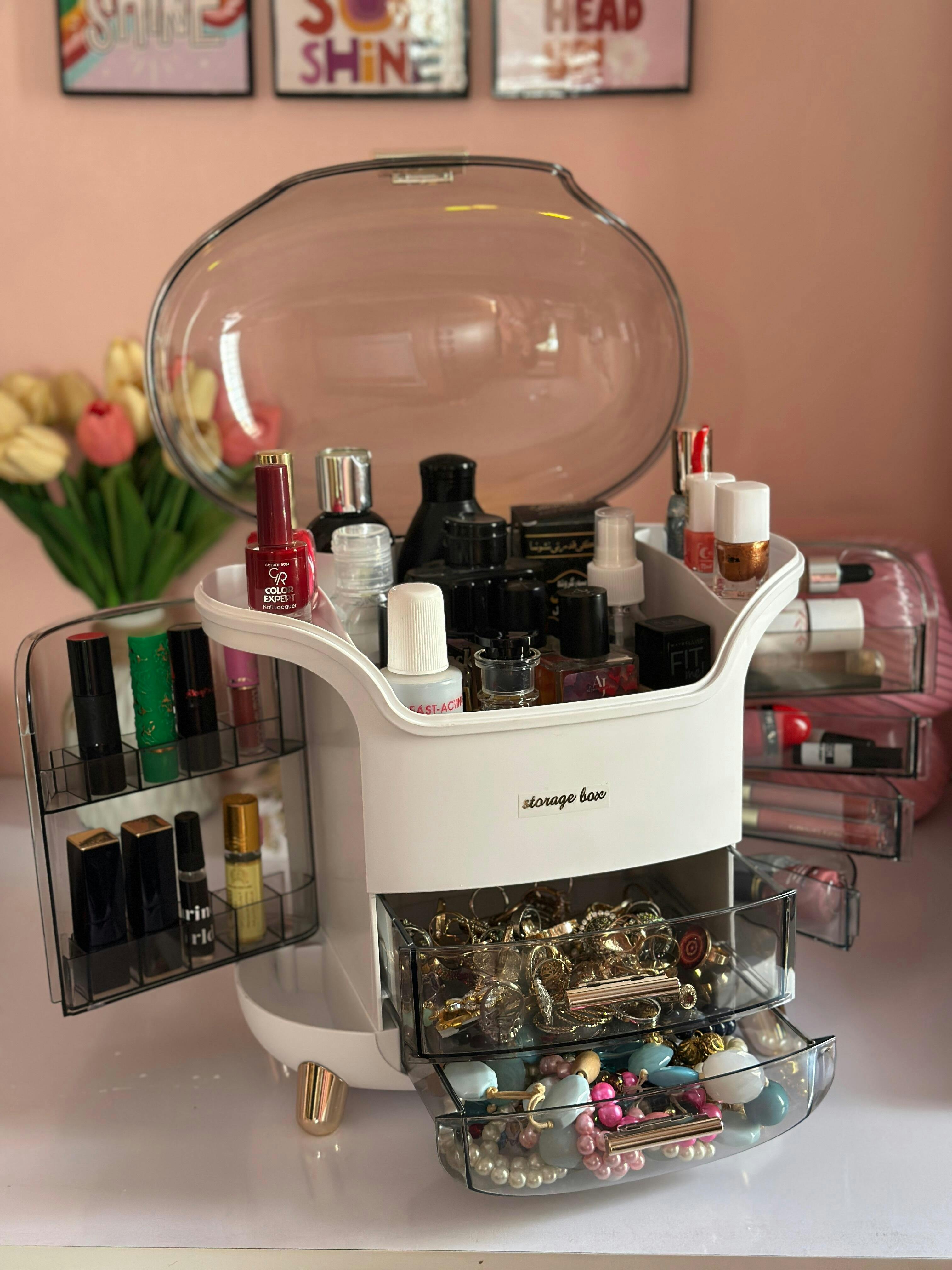 Amazing quality of organiser with soo much space to keep makeup or jewellery inside in one place.