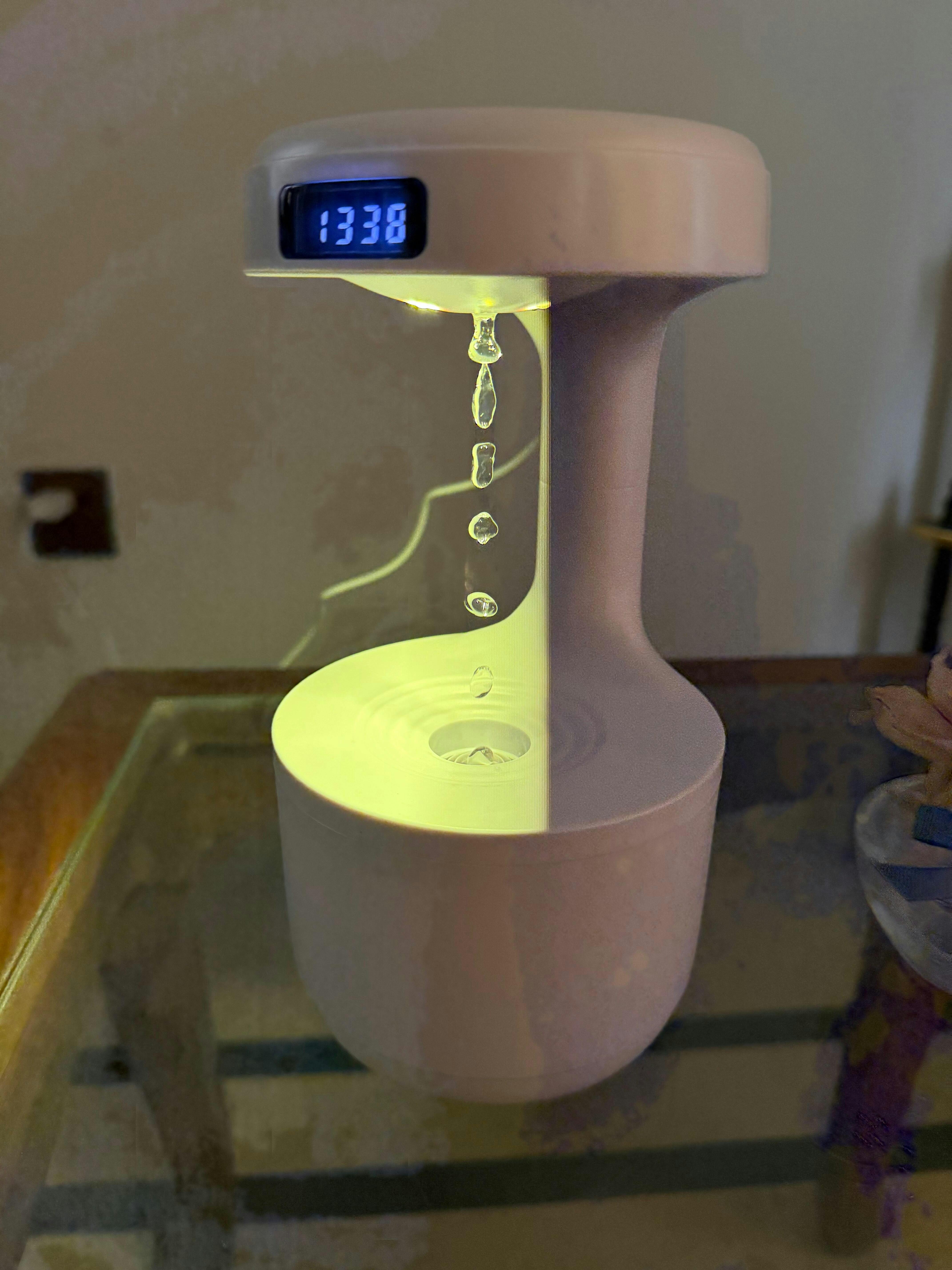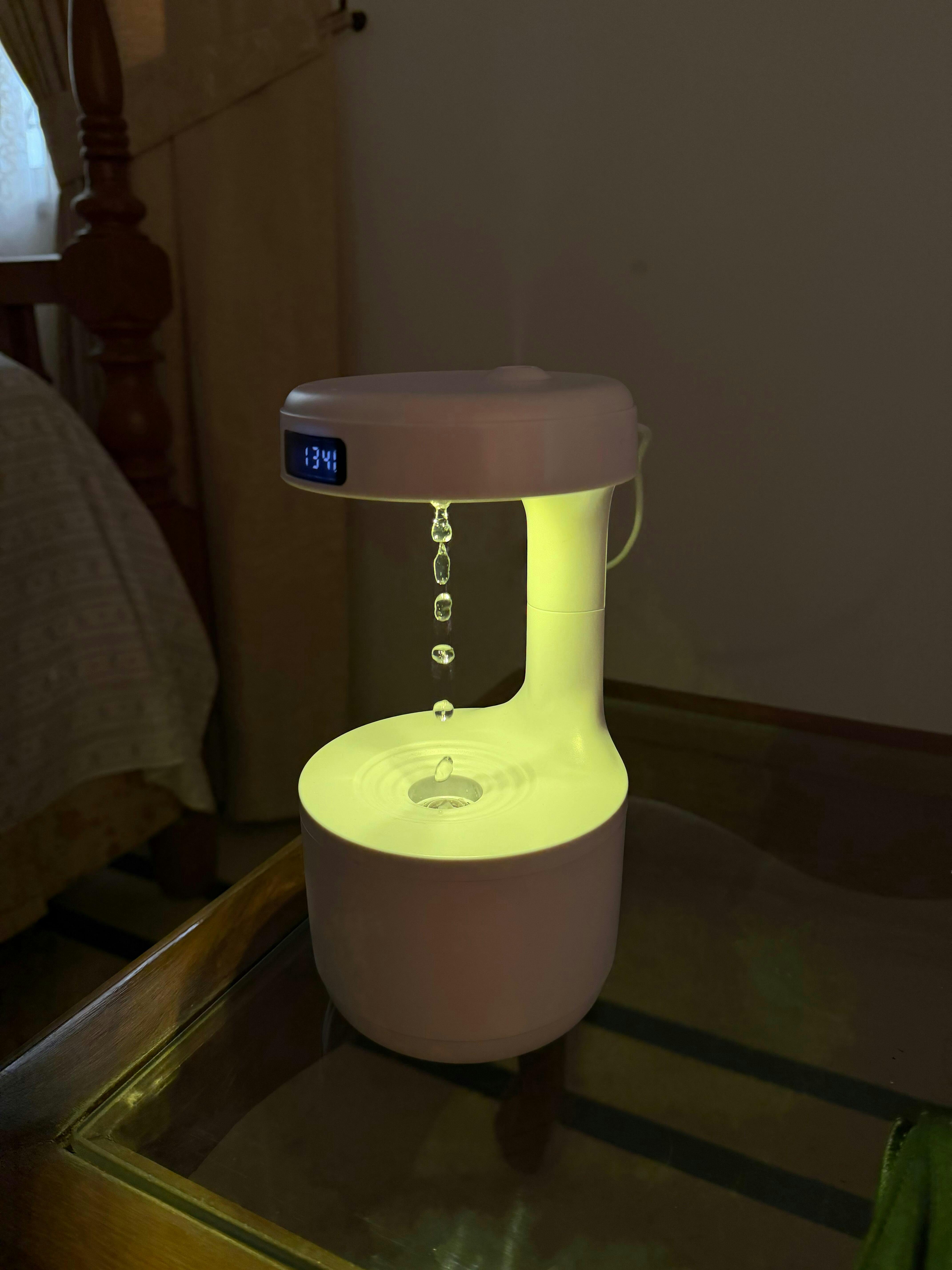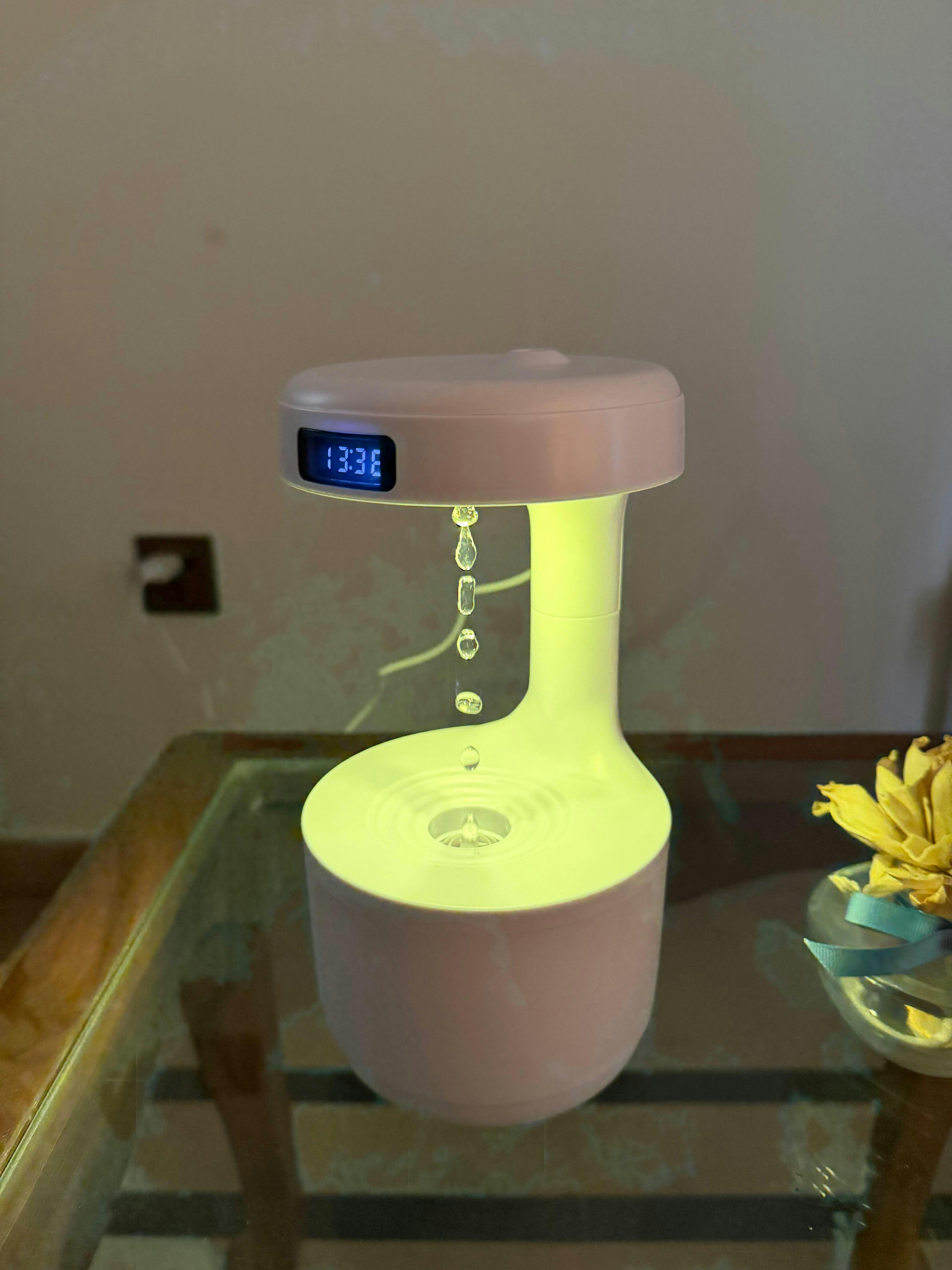 Light and LED Time Display, Portable Gravity Anti-gravity Water Drop Humidifier for Baby Home Bedroom